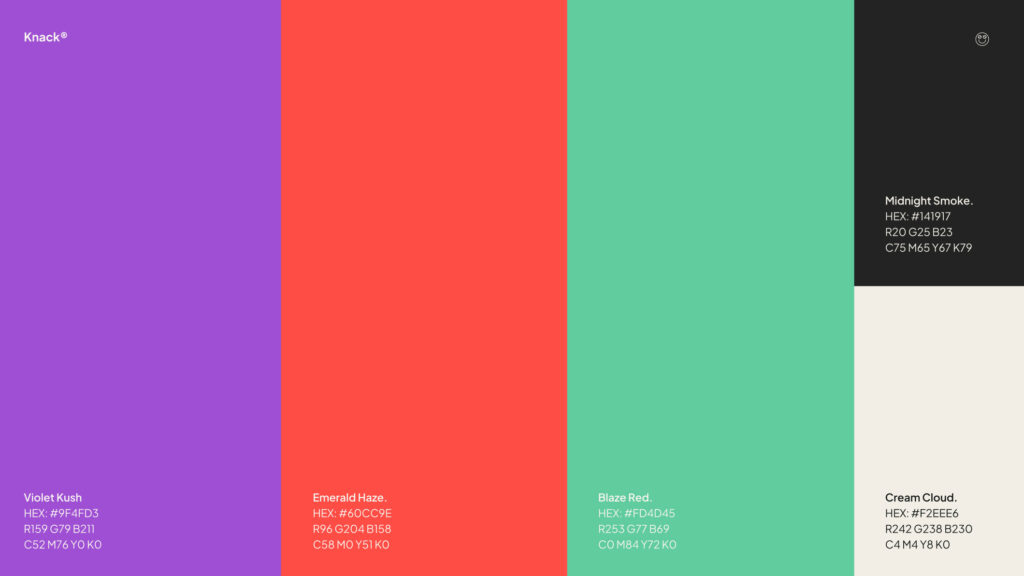 John Luke and the Imagemme studio gave Knack an identity that moves like the city itself. It is fast, fearless, and a little unhinged. Psychedelic ripples ripple across matte-black jars. Safety-seal stickers double as street art. The palette flips from mountain moss to taxi-cab neon in a single blink. The voice is pure bodega banter. It is one part wink, two parts dare. Scroll past a Knack post and you’ll still smell the bud.