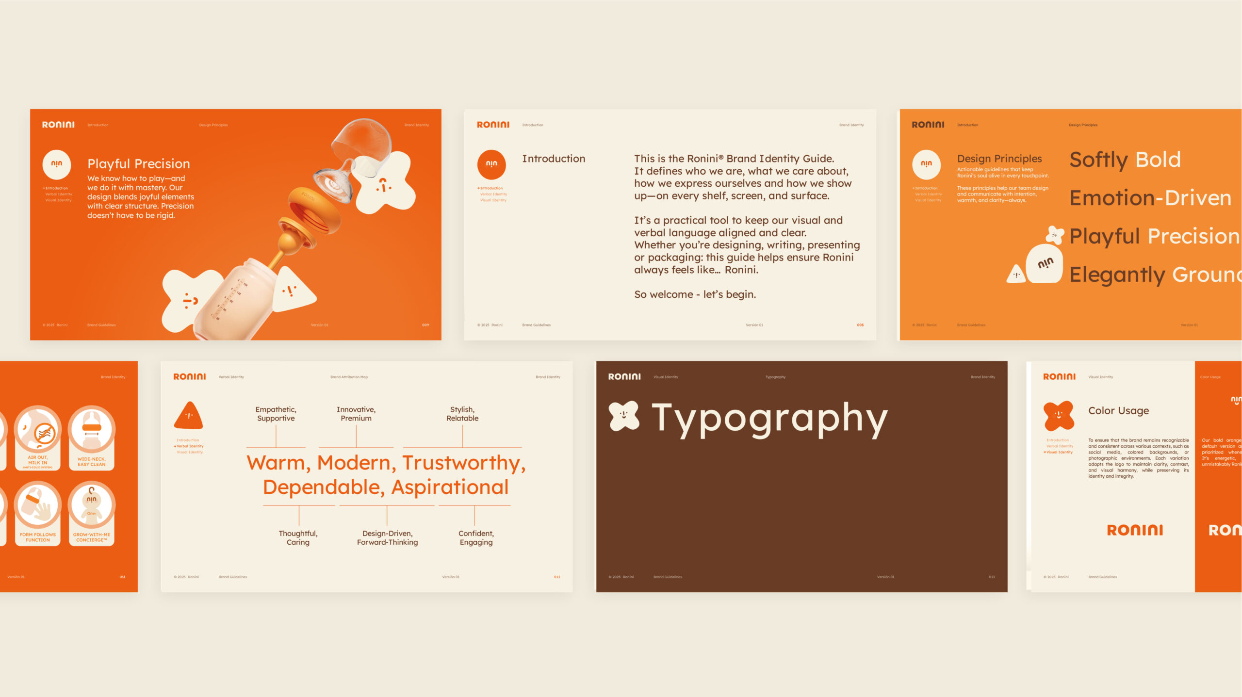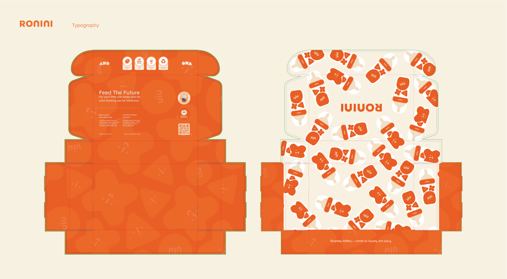 Launch assets ride shotgun on every new-parent errand. Orange stickers colonize strollers and diaper bags. Fifteen-second loops sneak between formula orders on Instacart. Guideline decks lock every curve of the ‘R’ and every hex of that orange, so the next plate, cup, or snack pod feels poured from the same safe, silly mold. Ronini is not another baby brand. It is the calm click of a lid that never leaks worry, the orange sunrise that says your kid’s first bite is celebration-ready from day one.